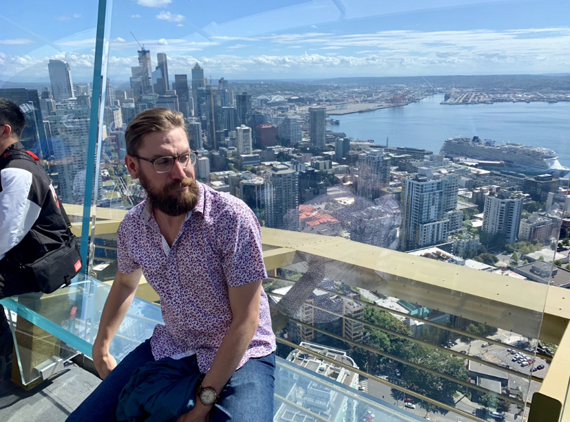 I recently visited Seattle on a work trip and went up the Space Needle with my friend Kelsey. I sat on a glass bench tilting against a glass wall and even butt-scooted my way onto the glass floor.